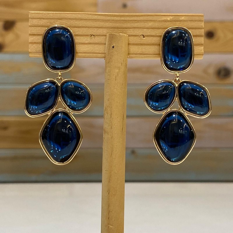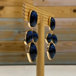 Preciosos pendientes largos de mujer con piedras azules y terminaciones doradas. Perfectos para tus ocasiones especiales. Cierre de tape.