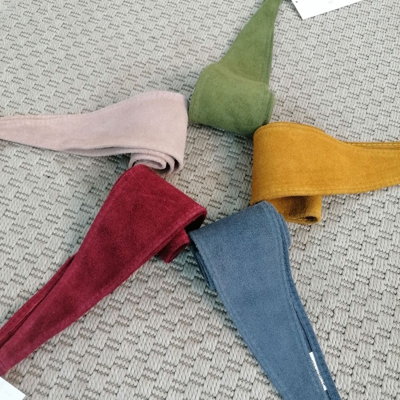 Fajines de piel de diferentes colores, para que cada vestido tenga su cinturón a juego.