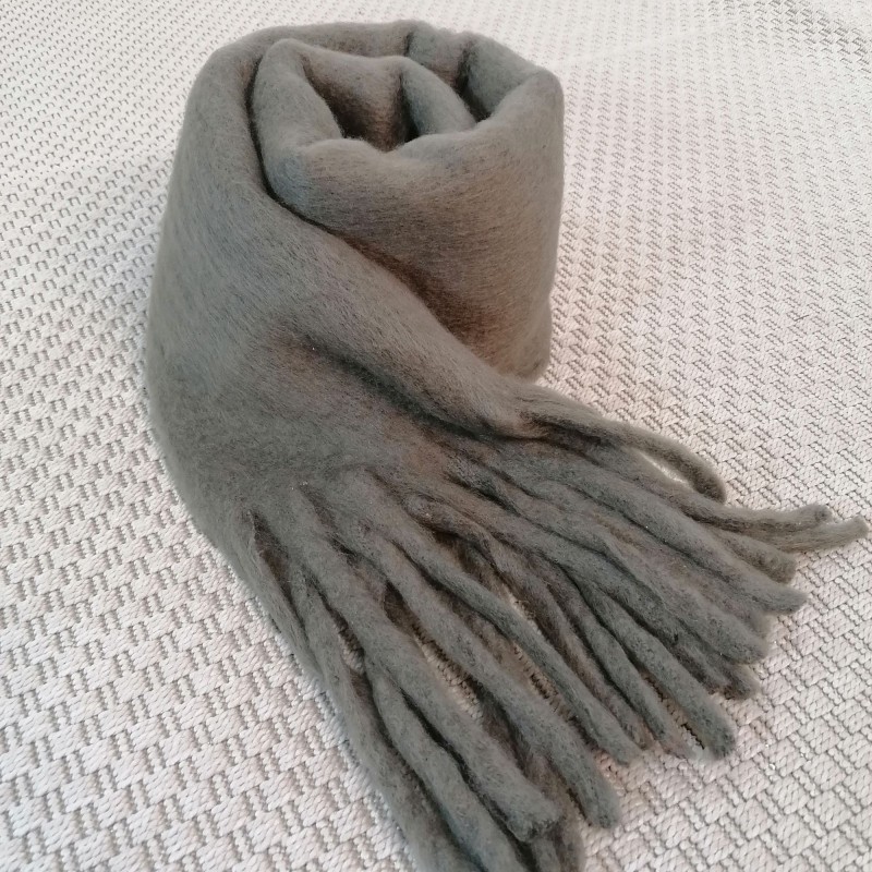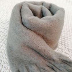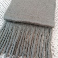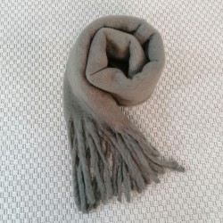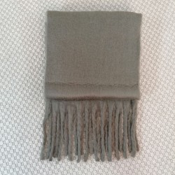 Bufanda en marrón terminada en flecos de forma rectangular. Tacto esponjoso y calentita.