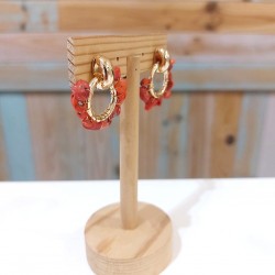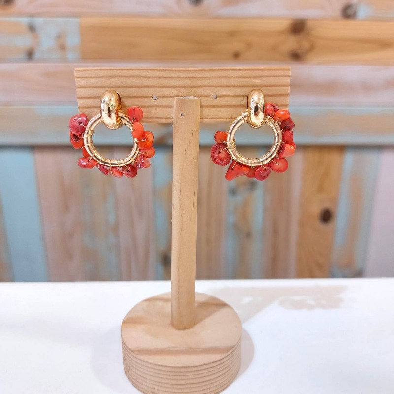 Pendientes aro cuenta rojas hilo dorado EAR_10332